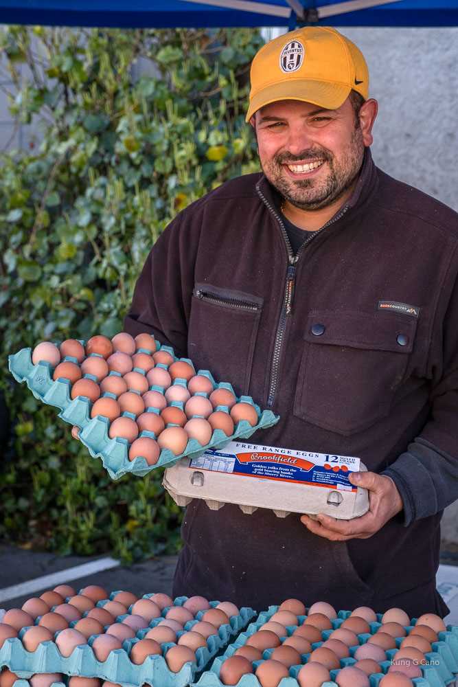 Brookfield Free Range Eggs has been a stall at the Market for many years. Dominic Palumbo and his partner Helen Davies purchased Brookfield in 2018 after looking for something ‘different’ to do. Initially they were looking for one acre but ended up with five acres, 2000 chickens and 60 ducks!