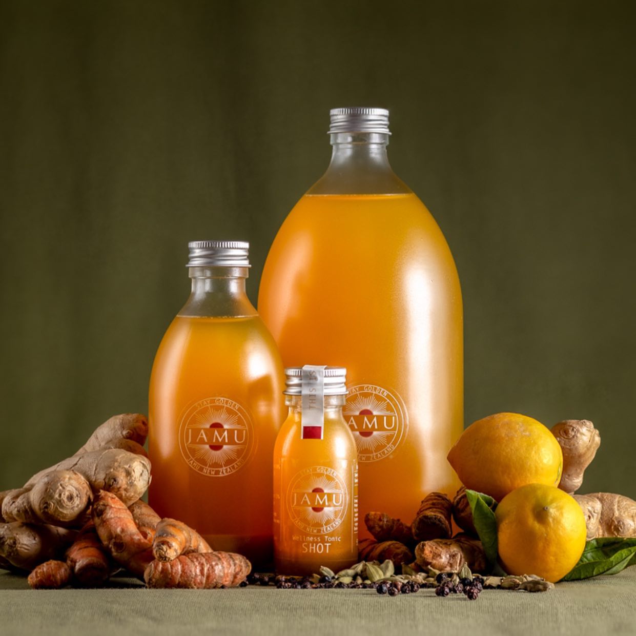Kick start your day with Jamu - 50ml a day to feeling golden inside and out. Jamu is a concentrate rich in turmeric and ginger root.It supports mental clarity, positive energy levels, muscle recovery, great gut health and the natural calming of inflammation. It's also smooth, strong and has zero sugar - all the good things in a delicious and NOT SWEET drink.